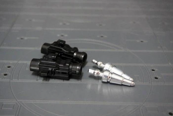 This great add-on set from Before and after features two missile launchers that actually fire! Additionally included is two chromed missiles and a sticker sheet . Set is an add-on designed to go with MP-17 Prowl. B&K Collectables are not responsible for eye loss or other physical injury due to firing of missile launcher. Use at your own risk!