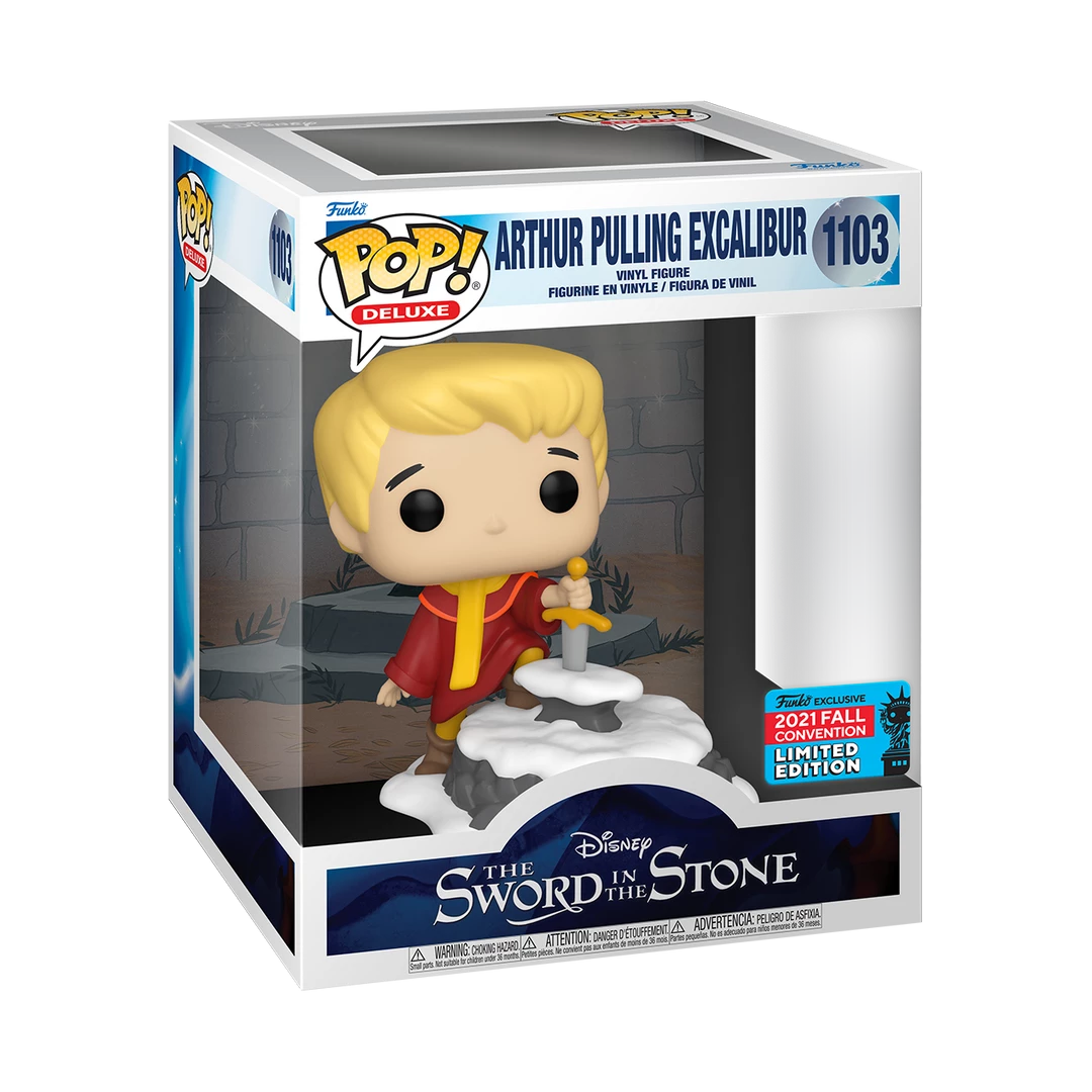 From The Sword In The Stone movie comes this Arthur Pulling Excalibur deluxe Pop! Vinyl Figure from Funko! This is a New York Comic Con shared limited edition exclusive figure.