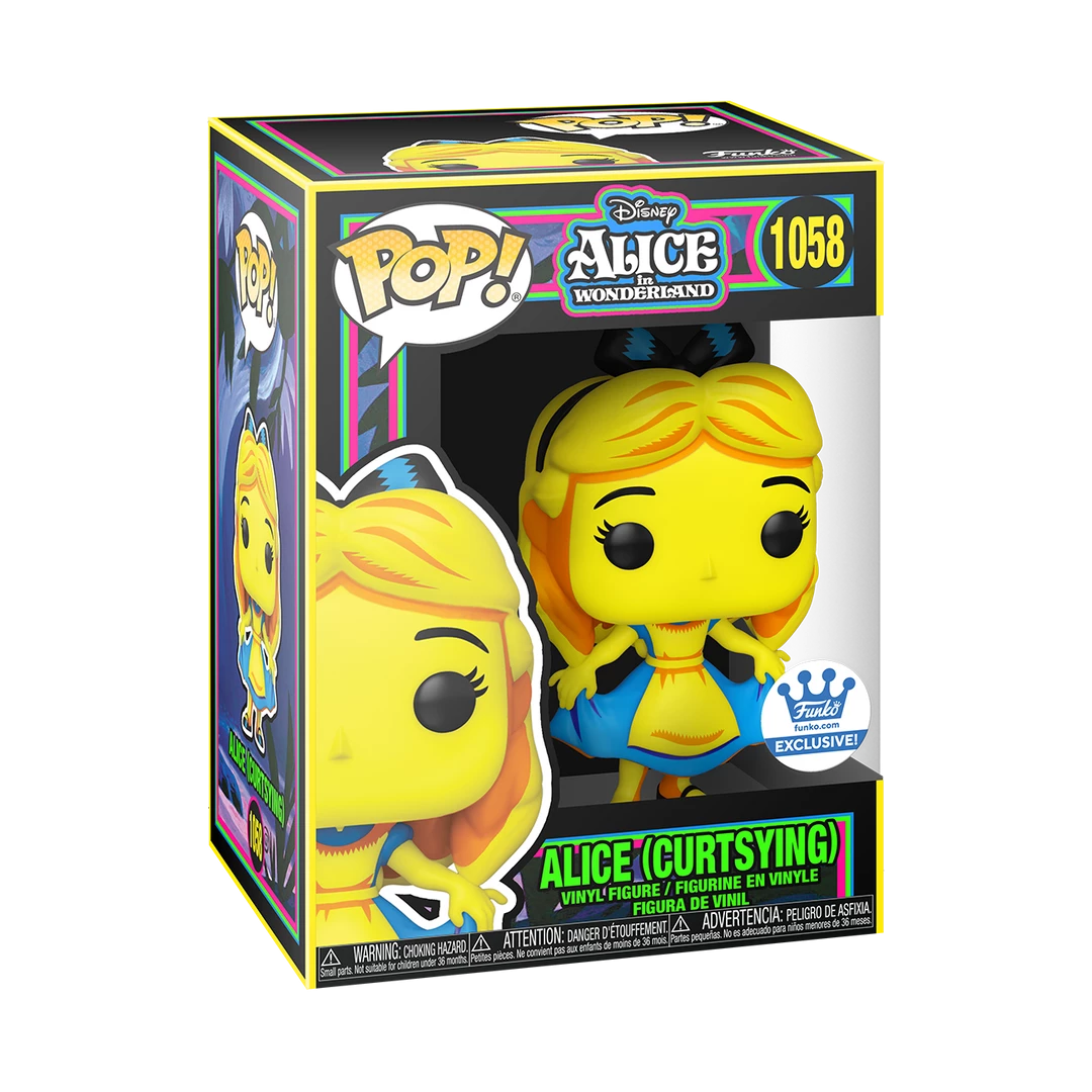 From the Disney Black Light series comes this Alice In Wonderland Alice Curtsying Pop! Vinyl Figure from Funko! This is a limited edition exclusive figure.