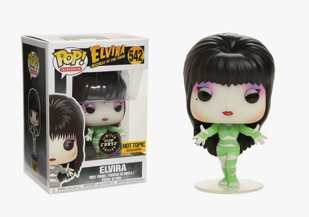 From the Elvira Mistress of the Dark television series comes this glow-in-the-dark zombie Elvira Pop! Vinyl Figure from Funko! This is an limited chase variant of this figure..