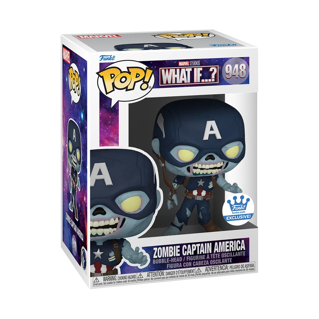 From the Disney+ What If? series comes this Zombie Captain America (reaching w/o shield) Pop! Vinyl Figure from Funko! This is a limited edition exclusive figure.