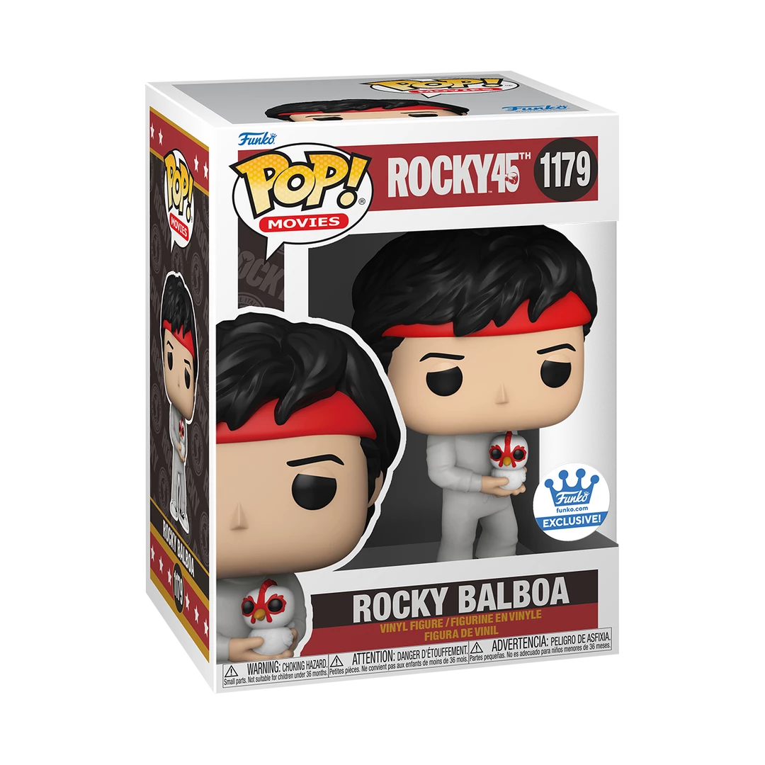 From the Rocky movie series celebrating their 45th Anniversary comes this Rocky Balboa (Holding Chicken) Pop! Vinyl Figure from Funko! This is a limited edition exclusive figure.