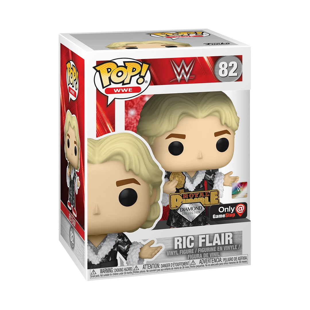 From the WWE comes this “Nature Boy” Ric Flair (/w Royal Rumble Pin) Diamond Edition Pop! Vinyl Figure from Funko! This is a limited edition exclusive figure