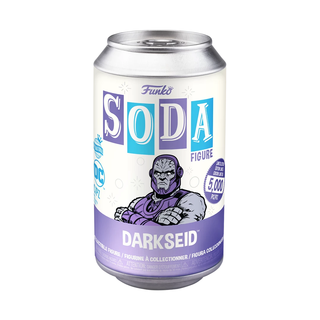 From the Soda and DC comics comes this Darkseid Vinyl Figure from Funko! Cans are sealed and chosen at random. 1 in 6 chance to receive the chase variant.