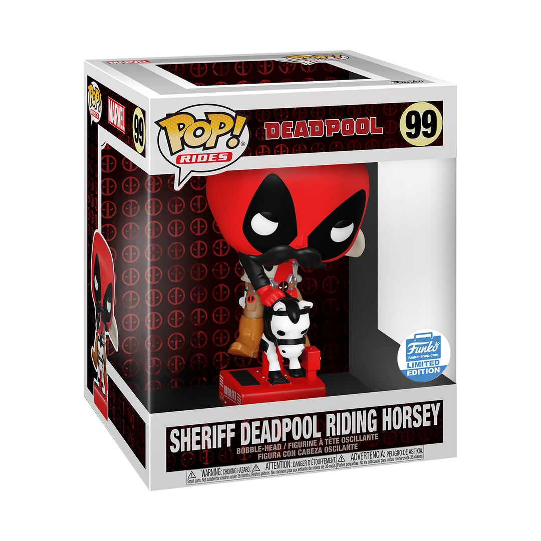 From the Deadpool series comes this Sheriff Deadpool riding Horsey Deluxe Pop! Vinyl Figure from Funko! This is a limited edition exclusive figure.
