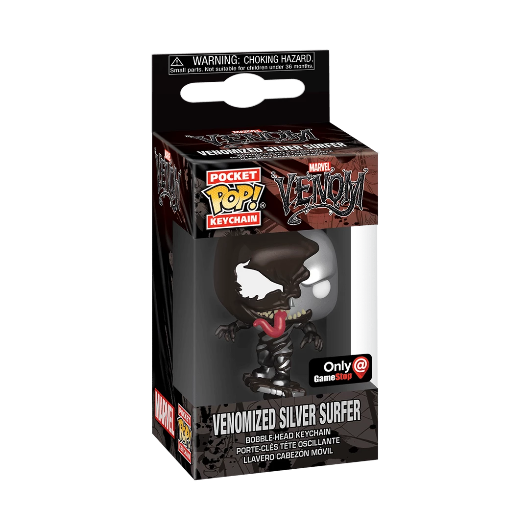 From the Marvel Venom series comes this Venomized Silver Surfer (Metallic) Pocket Pop! Keychain! This is a limited edition exclusive keychain.
