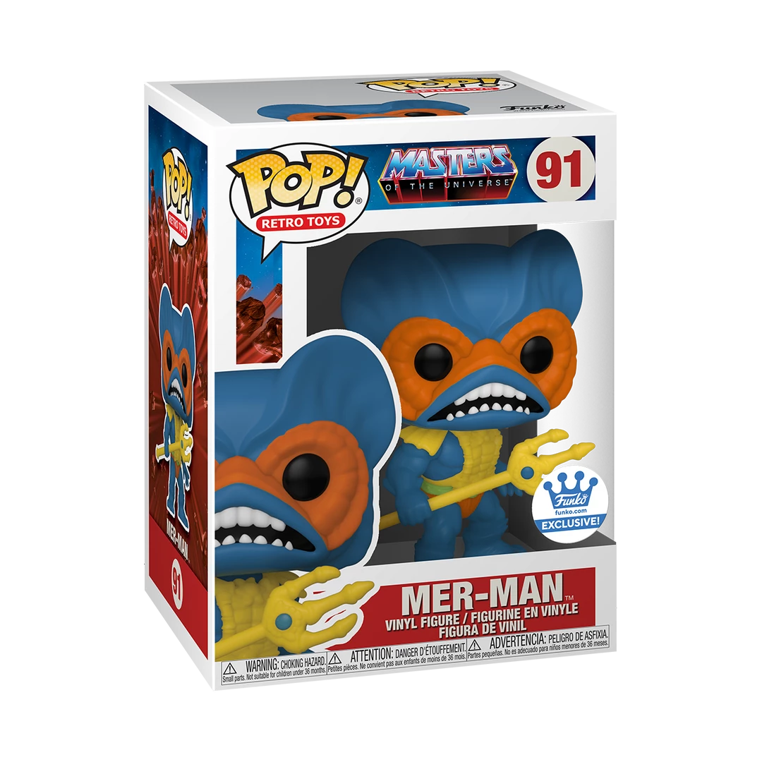 From the classic retro toys from the 80’s comes this Masters of the Universe Mer-Man (blue) Pop! Vinyl Figure! This is a limited edition exclusive figure.