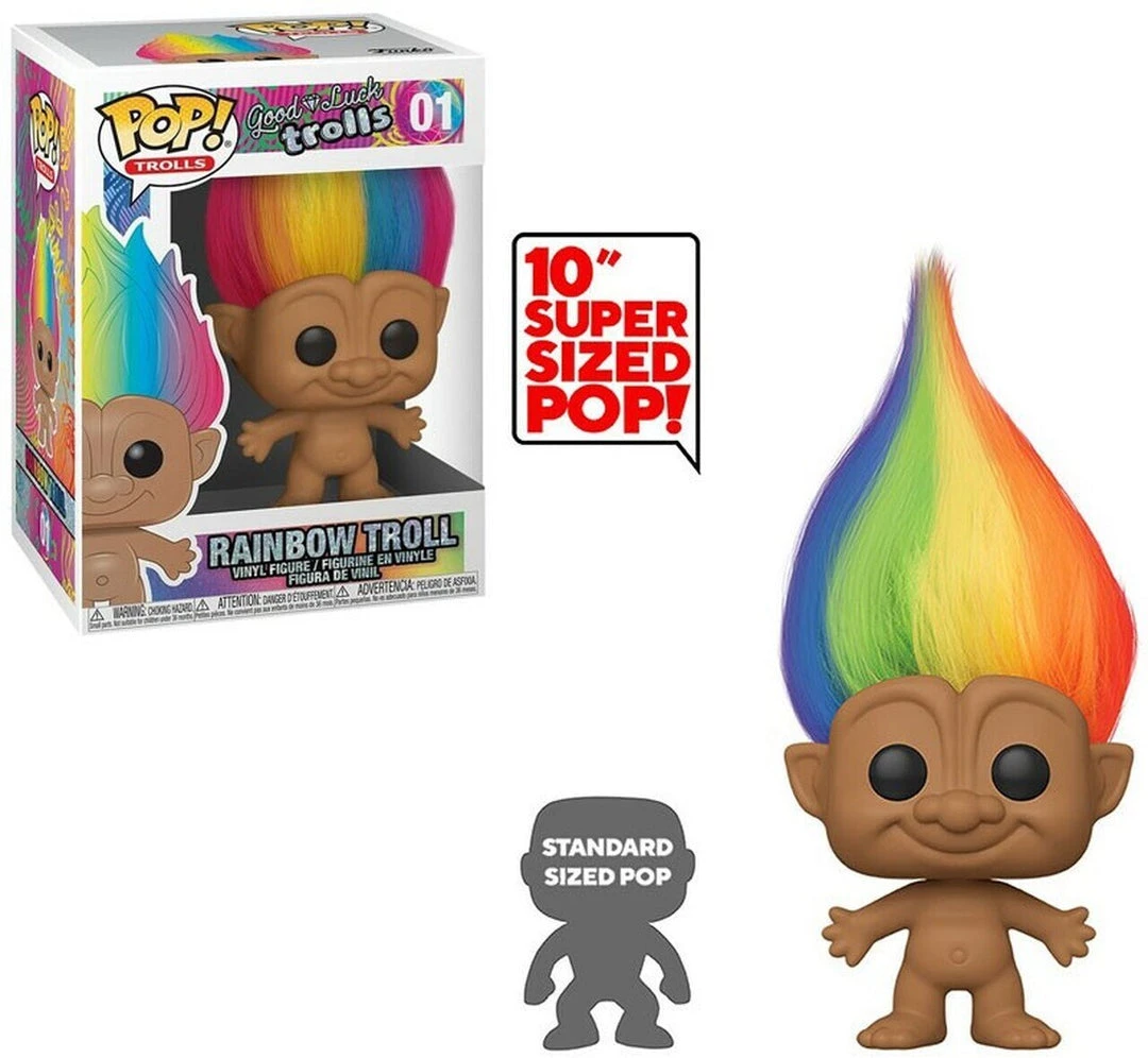 From the Good Luck Trolls series comes this 10-ince Rainbow Troll pop vinyl figure from Funko!