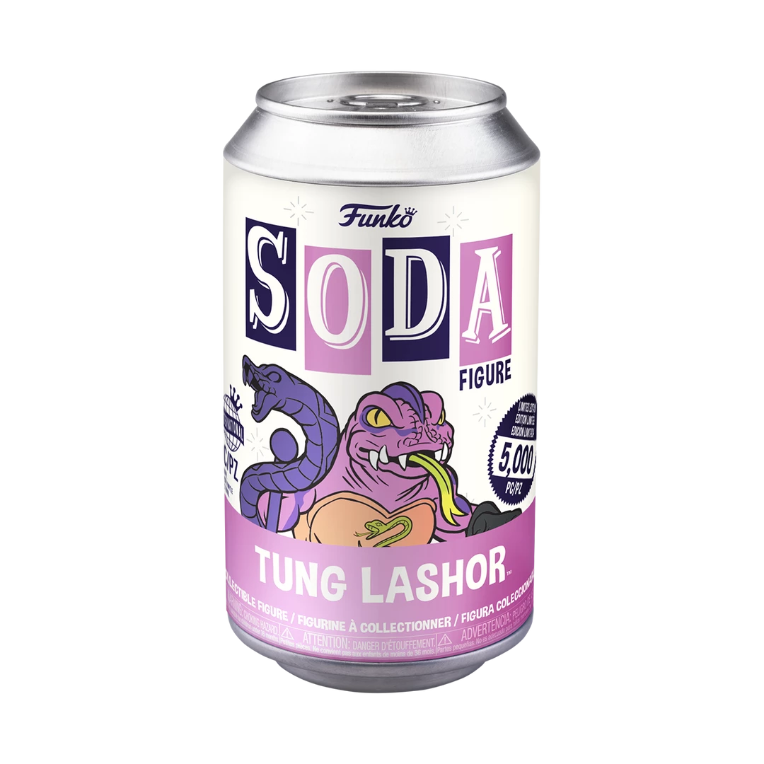 From the Soda series comes this Masters Of The Universe villain, Tung Lashor Vinyl Figure from Funko! Cans are sealed and chosen at random. 1 in 6 chance to receive the metallic chase variant.
