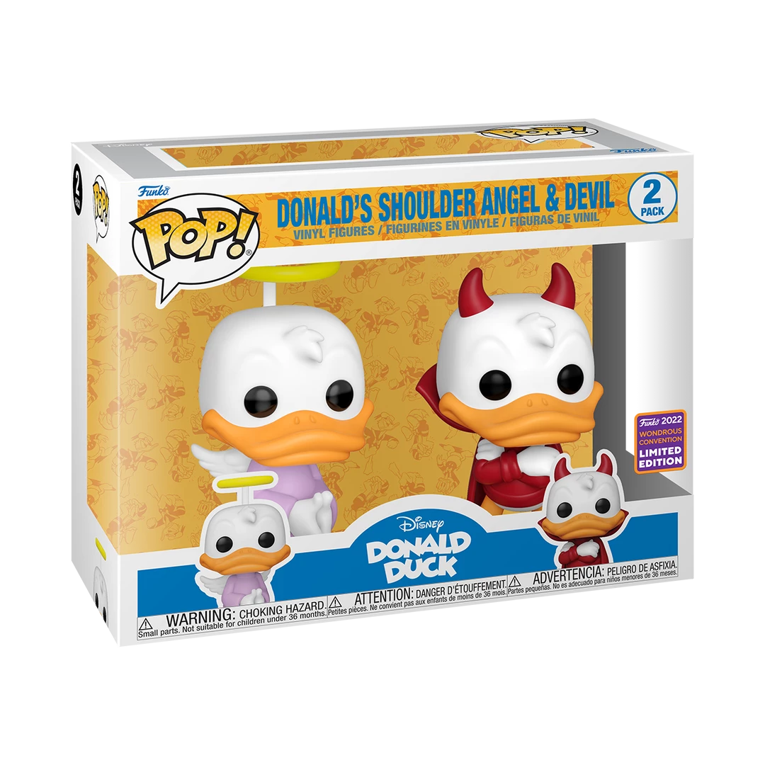 From the Disney Universe comes Donald Duck’s shoulder Angel and Devil in a Pop! Vinyl 2-pack! This is a WonderCon 2022 limited edition shared exclusive figure.
