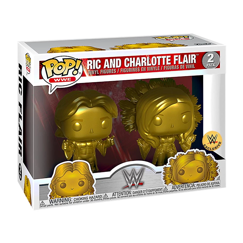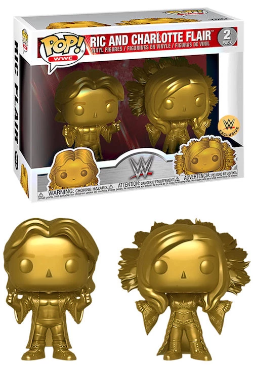 From the WWE comes this golden 2-pack of “The Nature Boy” Ric Flair and his daughter, “the Queen” Charlotte Flair of Pop! Vinyl Figures from Funko! This is a limited edition exclusive figure set.
